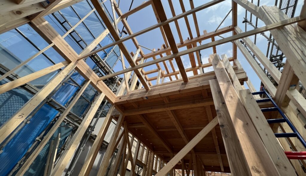 柱・梁に加え構造用面材で建物を囲み支える工法で、
