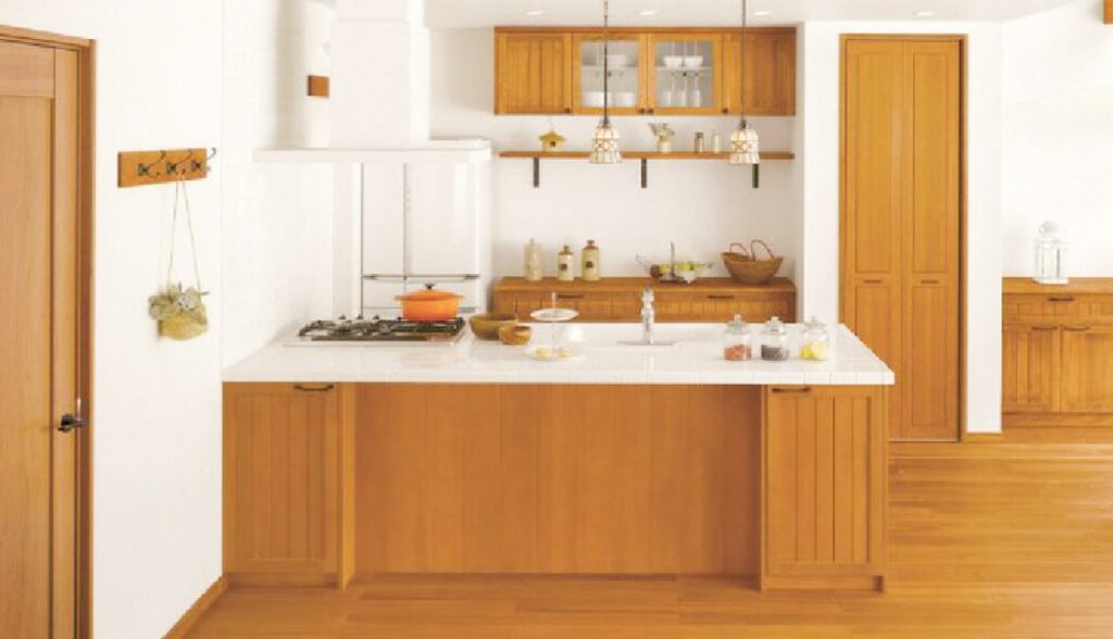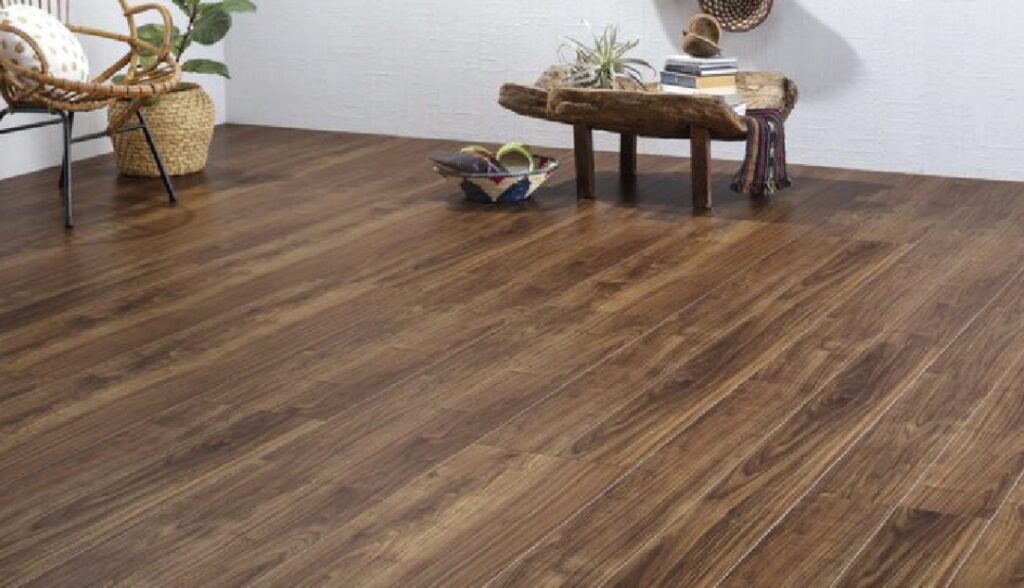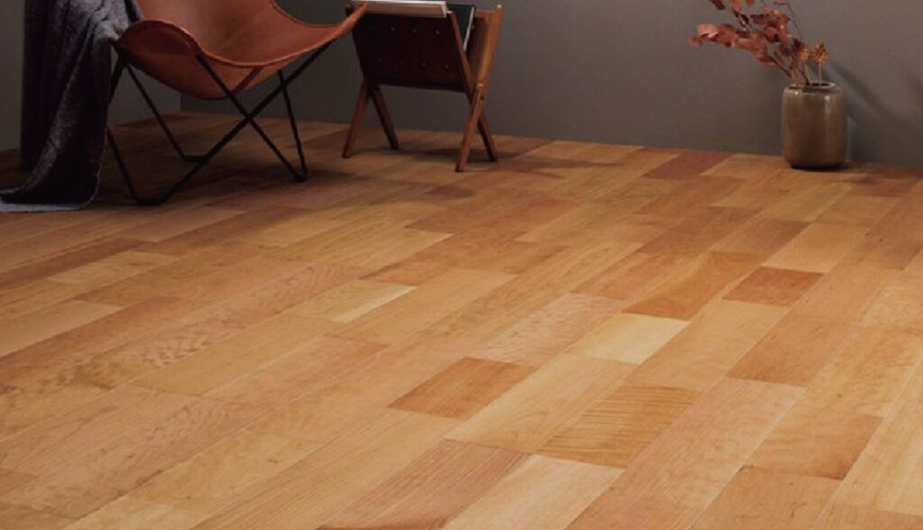 1階の床材は0.5㎜単板で自然な木目を再現し、