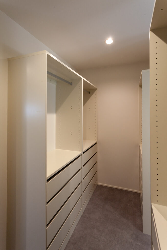家族で使えるファミリークローゼットを洗面室近くに設けることで家事動線もばっちりです。